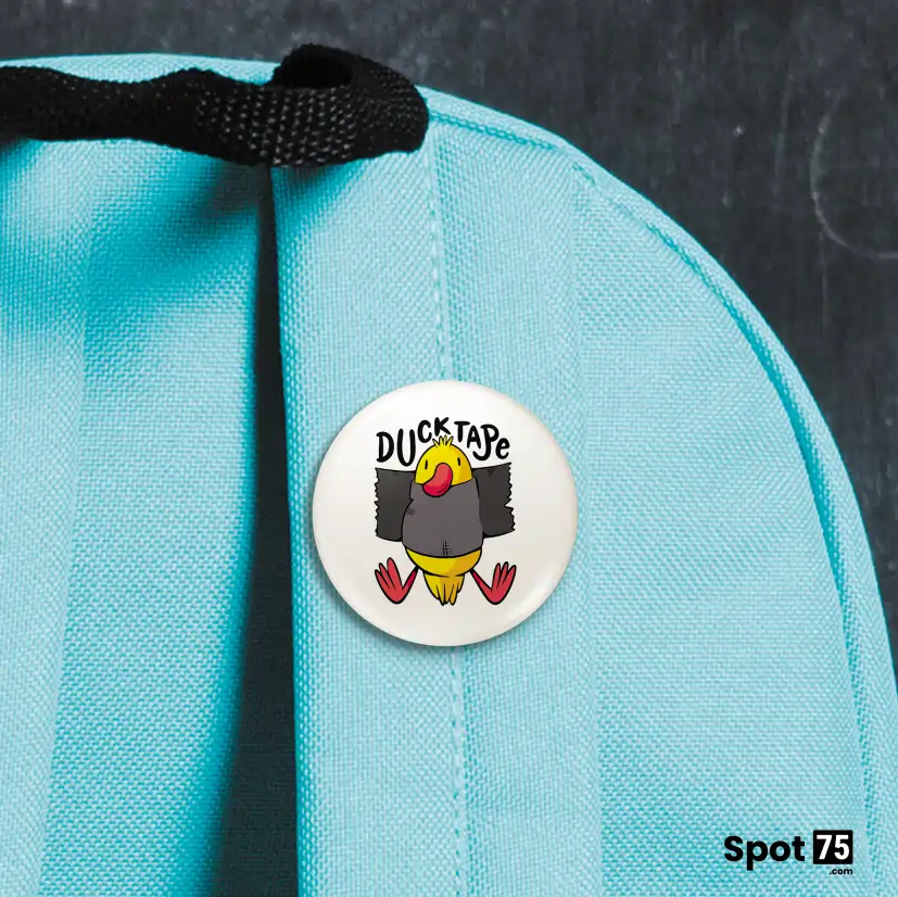High-quality 7×7 cm circular button badge with a durable pin-back and vibrant sublimation print.