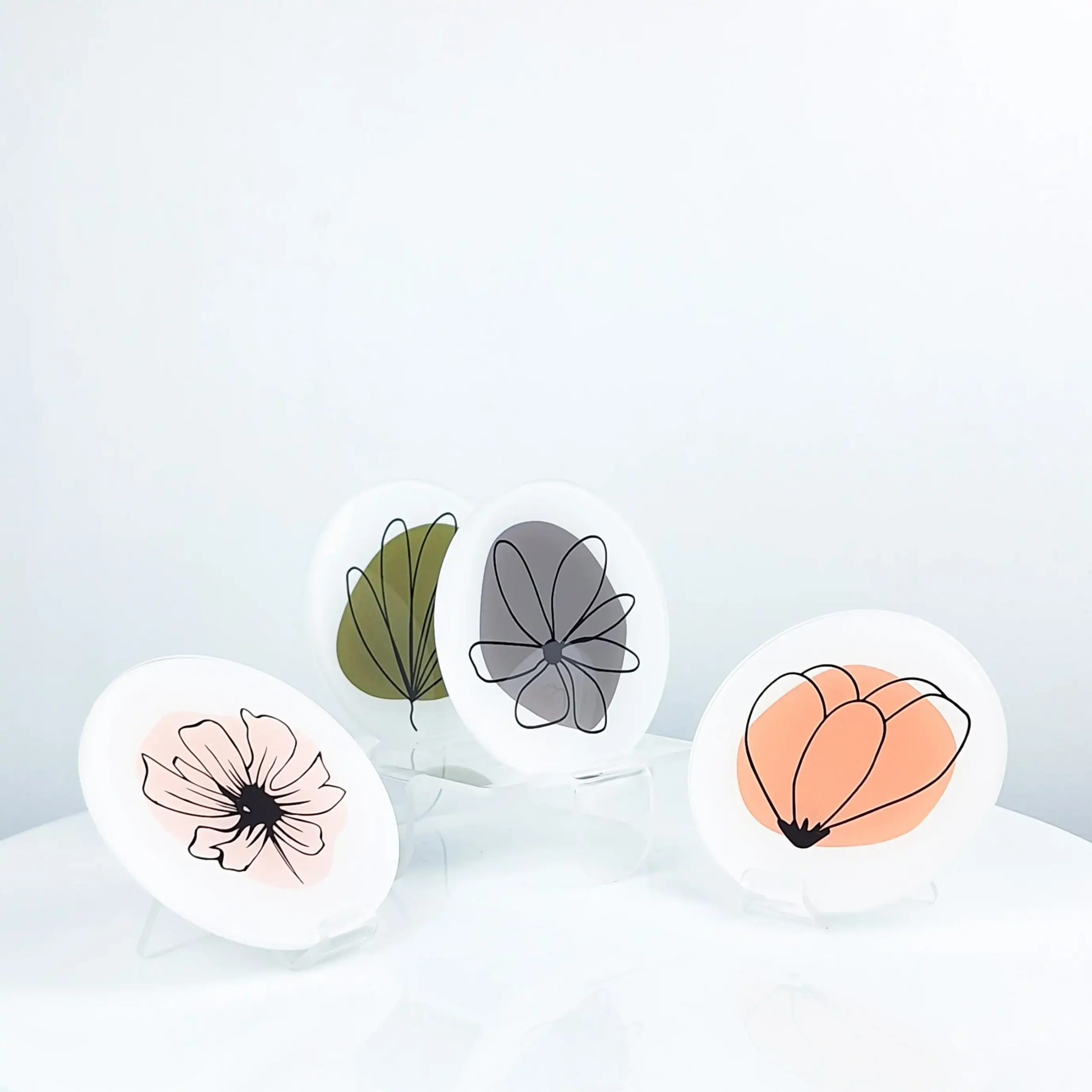Add a modern touch to your table with this set of 4 premium acrylic coasters. Each 10×10 cm piece features a unique, stylish design?durable, waterproof, and easy to clean. Perfect for home, office, or gifting.