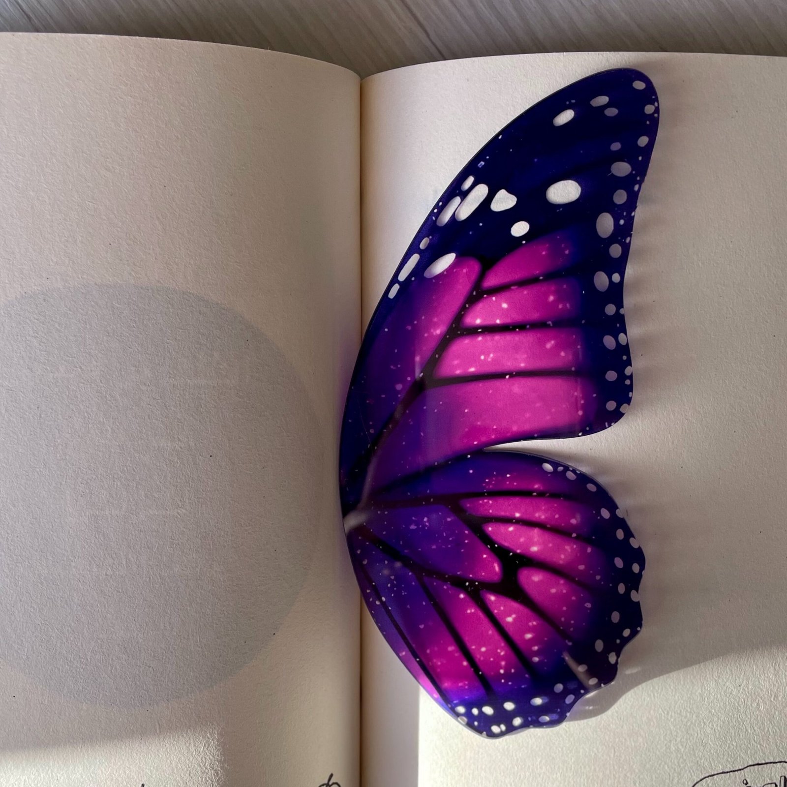 Magical purple butterfly wing bookmark with starry details.