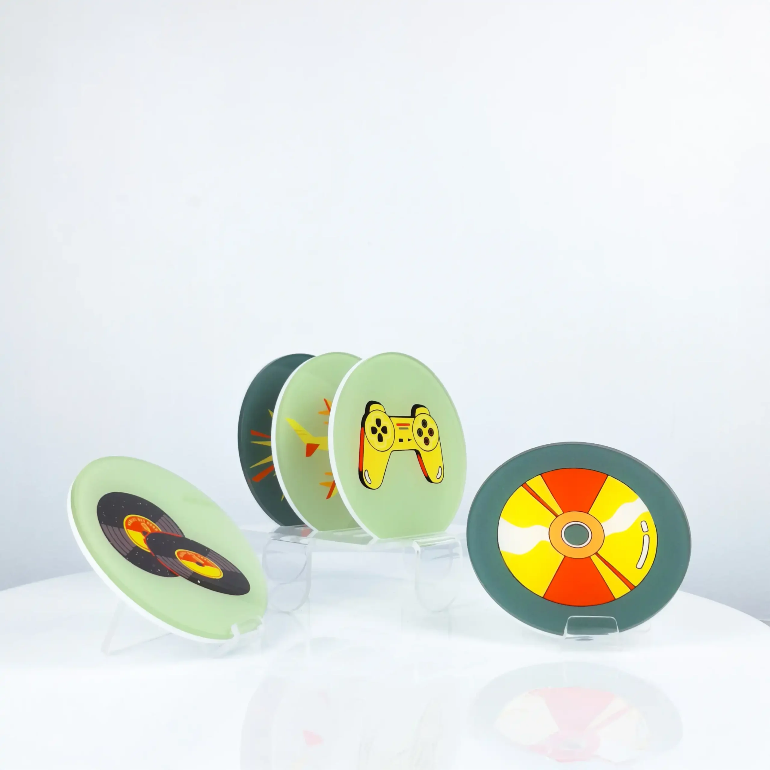 Add a modern touch to your table with this set of 4 premium acrylic coasters. Each 10×10 cm piece features a unique, stylish design?durable, waterproof, and easy to clean. Perfect for home, office, or gifting.