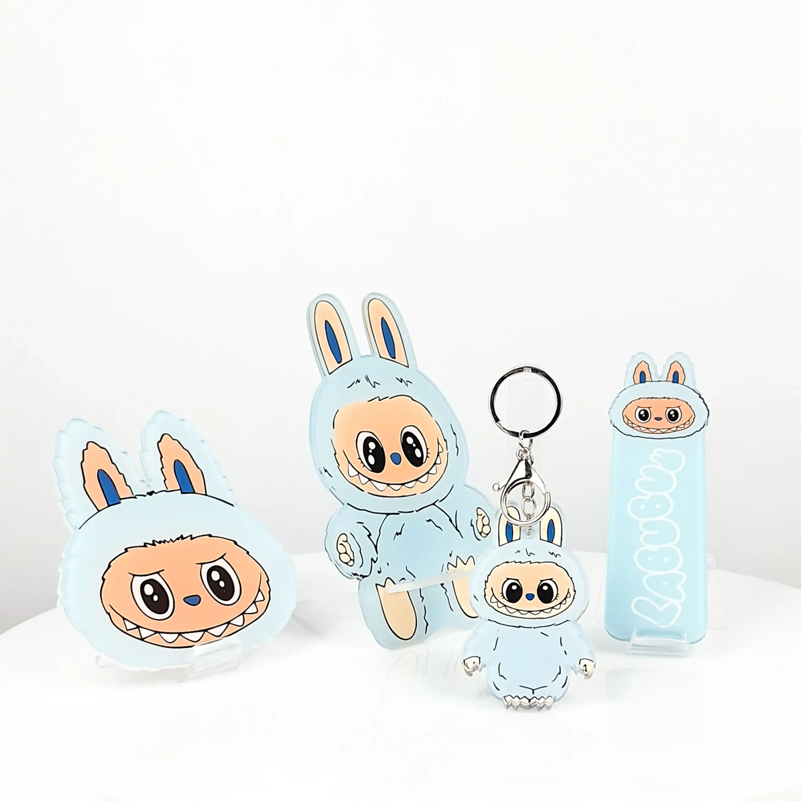 Discover the charm of Labubu with this premium acrylic set! Includes a mobile holder, bag keychain, bookmark, and coaster — all crafted from high-quality acrylic with vibrant, lasting designs. Perfect for daily use or as a unique gift.