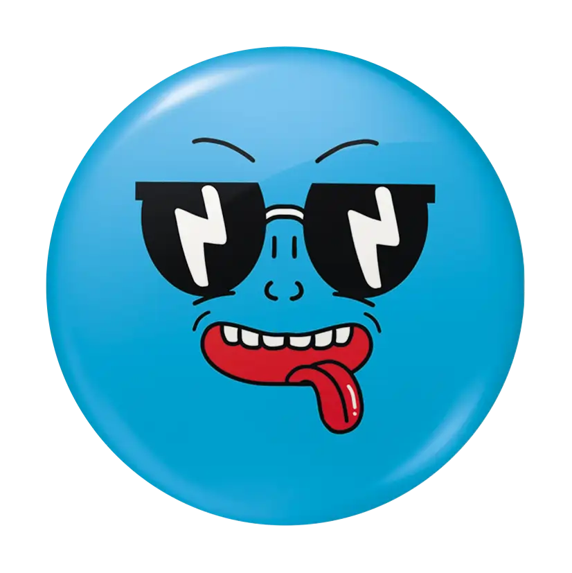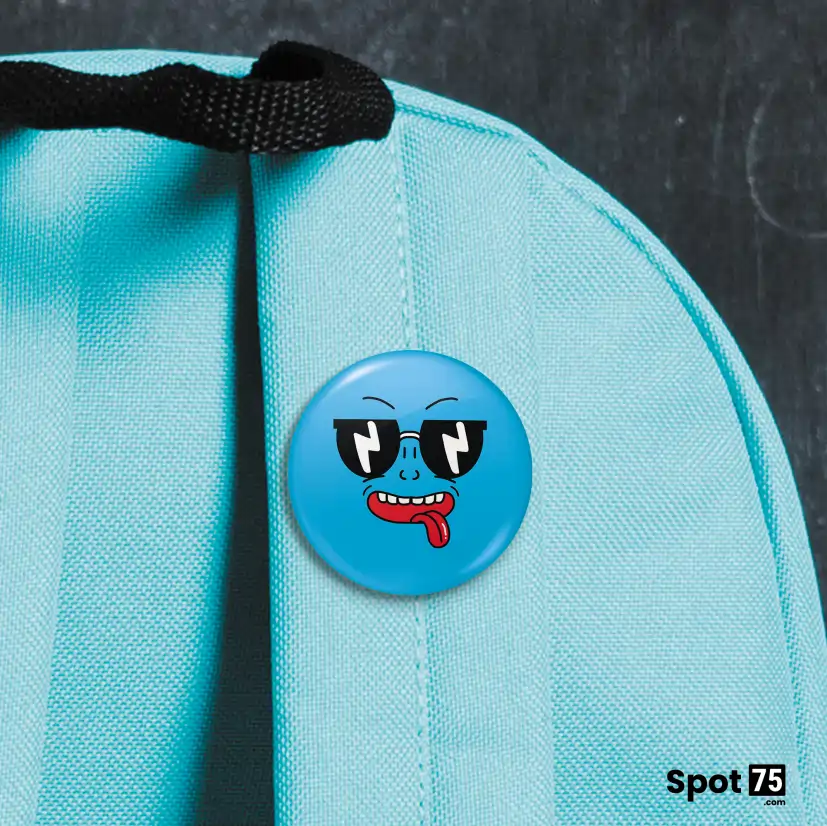 High-quality 7×7 cm circular button badge with a durable pin-back and vibrant sublimation print.