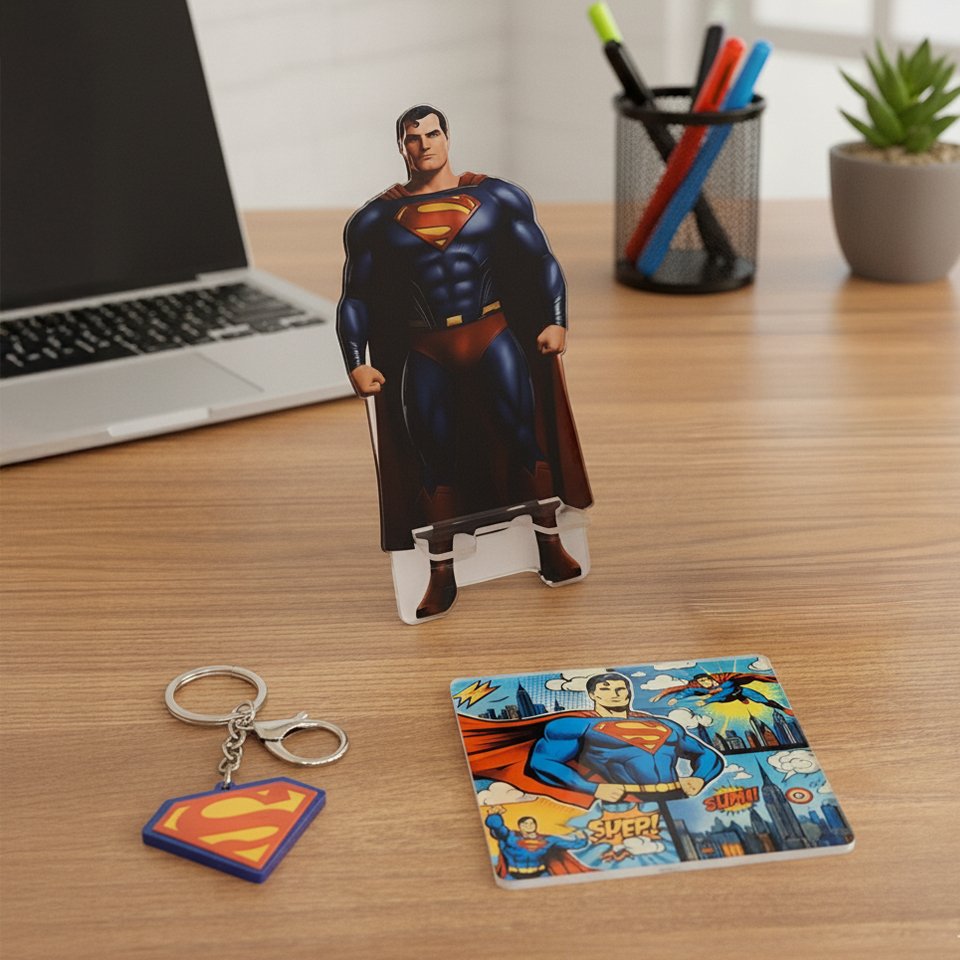 Add a heroic touch to your desk and everyday style with this Superman-themed set. Designed with vibrant details and durable acrylic materials, each piece brings bold comic energy and practical use. Perfect for fans, collectors, or as a unique gift that stands out.